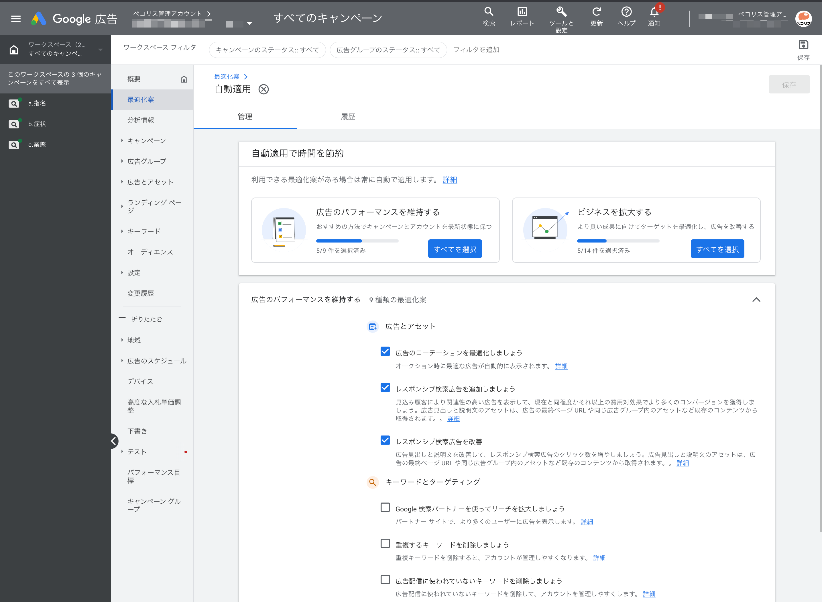 最近では見なくなりましたが、「自動的に予算をどんどん上げて行く」という設定があったこともありました。しっかりと確認せずに安易に最適化案を認証してしまうと、予期せぬ結果になって費用対効果を落としてしまう可能性も十分あるので、ぜひ注意して選んでください。