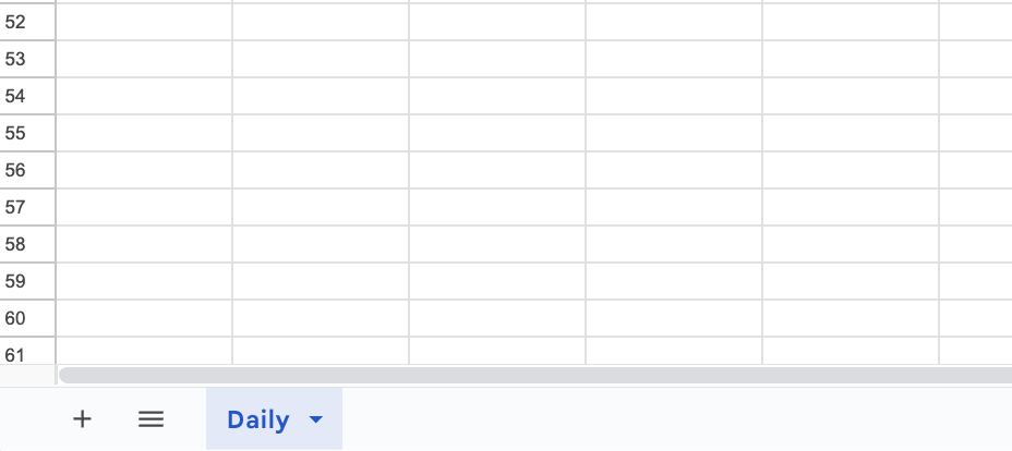 まず、スプレッドシートを用意します。今回はシート名を「Daily」にします。